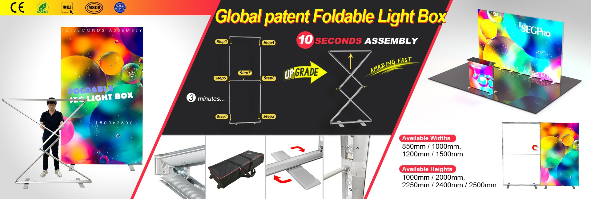 Productos principales:Caja de luz, cabina de exposición, soporte emergente, fondo de tela de tensión, soporte enrollable